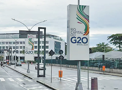 里约热内卢街头的二十国集团指点东说念主峰会记号。